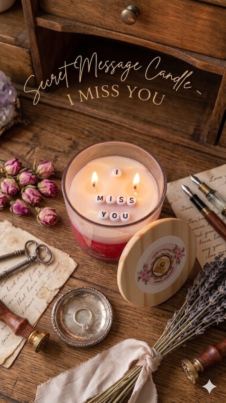 Light up your feelings with this charming glass jar candle featuring a hidden secret message: I MISS YOU.