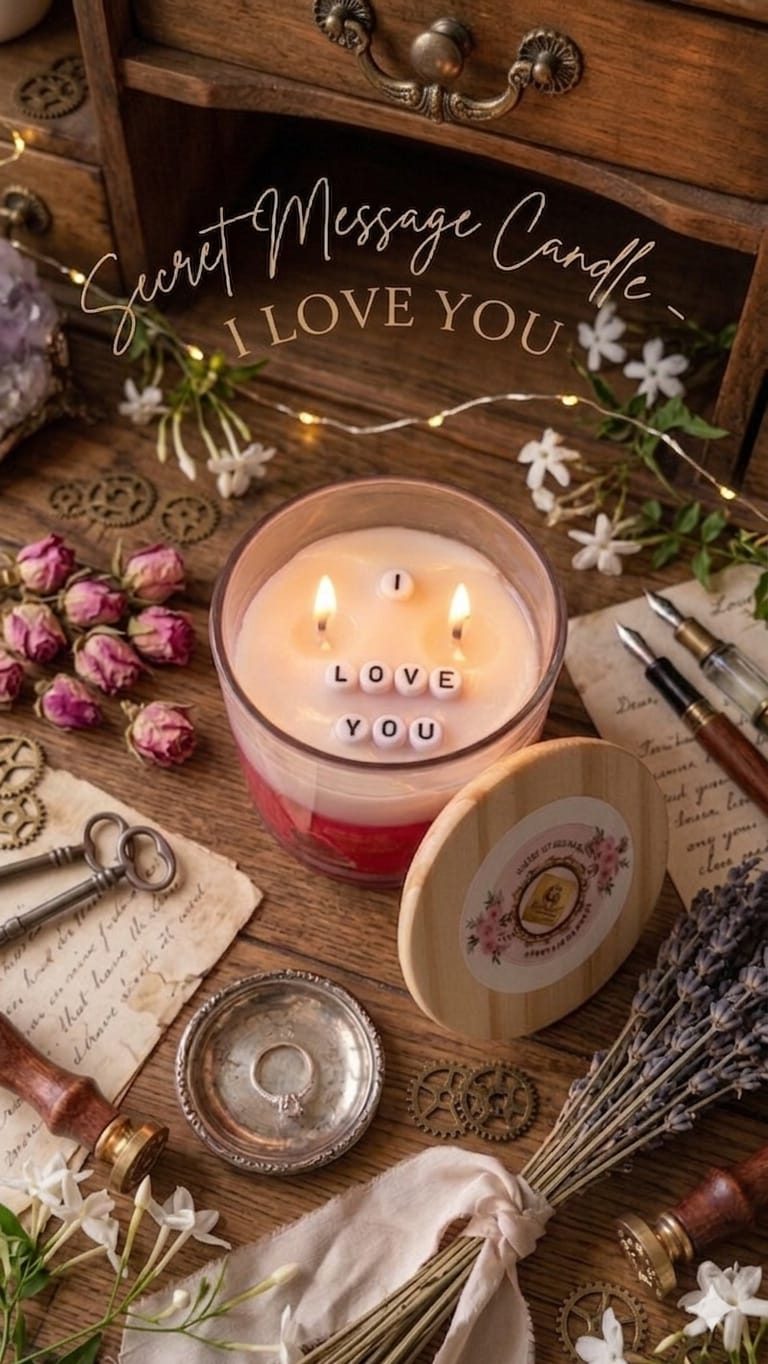 Illuminate your love with this enchanting glass jar candle featuring a hidden "I LOVE YOU" message that reveals itself as the wax burns down.